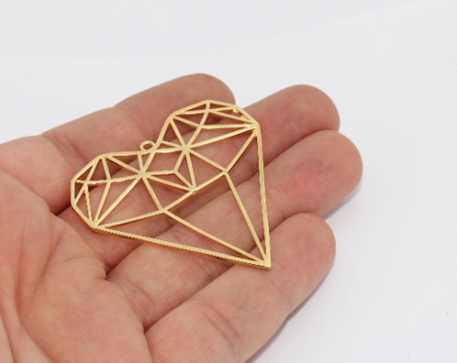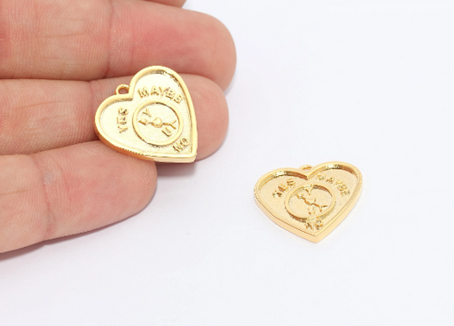 50 mm 24 Ayar Parlak Altın Kolye, Kalp Charm, Kalp Kolye, MTE1025