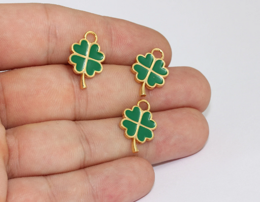 Malzeme : Pirinç Boyut : 13x22mm Renk : 24 ayar Parlak Altın Kaplama Mine Rengi: Yeşil Miktar : İsteğe bağlı