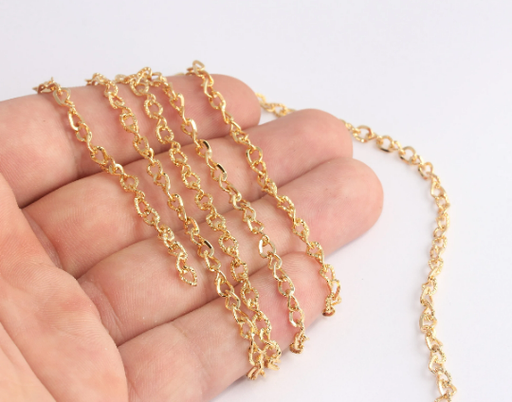 3,5x5mm 24 ayar Parlak Altın Bordür Zinciri, Lehimli Zincirler, CHK675-1