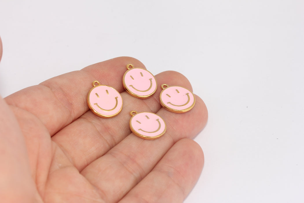 24 Ayar Parlak Altın Kaplama Gülümseme, 14x12 Gülümseme Tılsımı, Pembe, FRB103