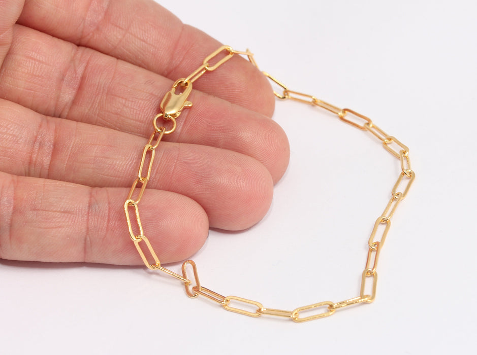3,3x9,1 mm 24 Ayar Parlak Altın Bağlantı Bilekliği, Hazır Oval Bağlantı Bilekliği, BXB395-146
