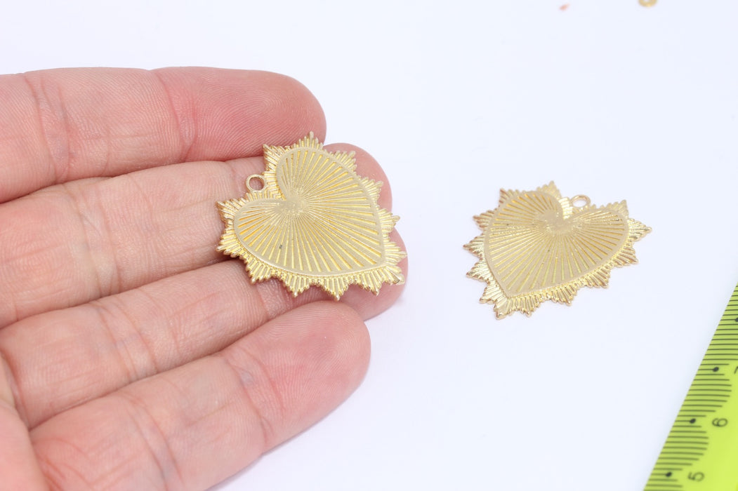 30 mm Ham Pirinç Güneş Kalp Kolye, Kalp Aşk, Ham Pirinç Parçalar, MLS368-1