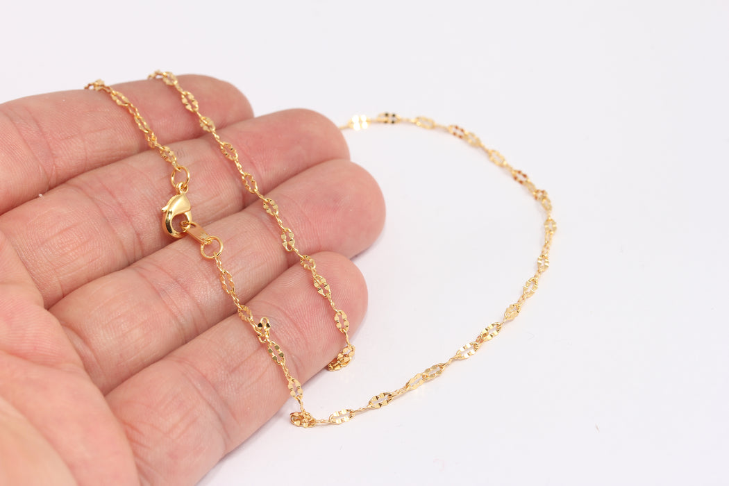 2x4,3 mm 24 Ayar Parlak Altın Rolo Kolye, Hazır Oval Rolo Zincir, BXB395-142