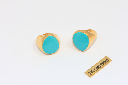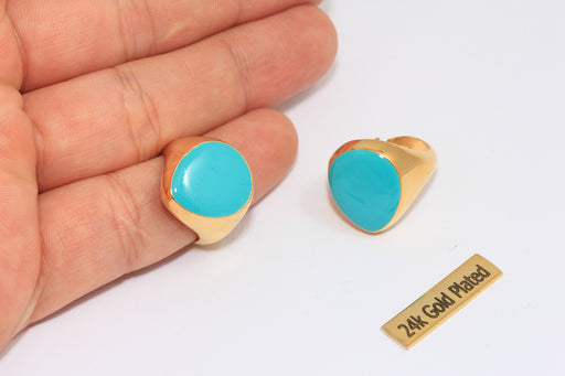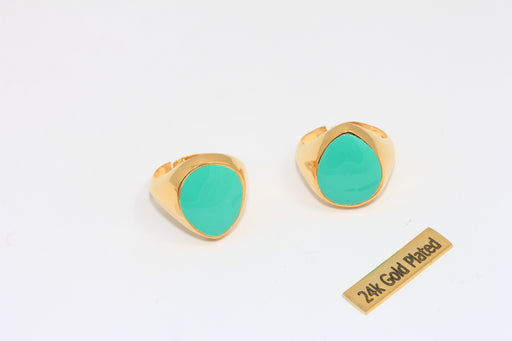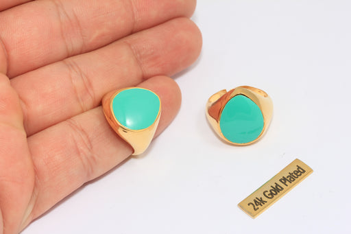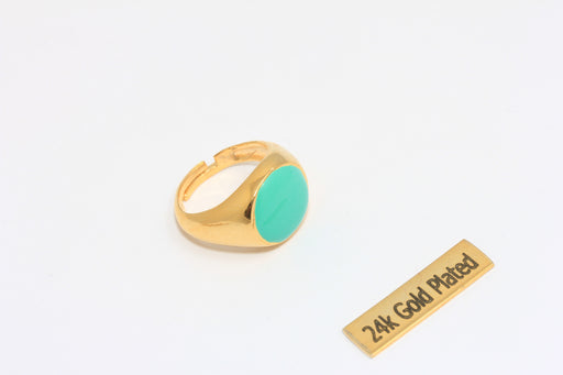 17-18 mm 24 Ayar Parlak Altın Yüzükler, Yeşil Emaye Madeni Para Yüzükleri, Altın Gösterişli Yüzükler, Yuvarlak Yeşil Yüzükler, MTE266