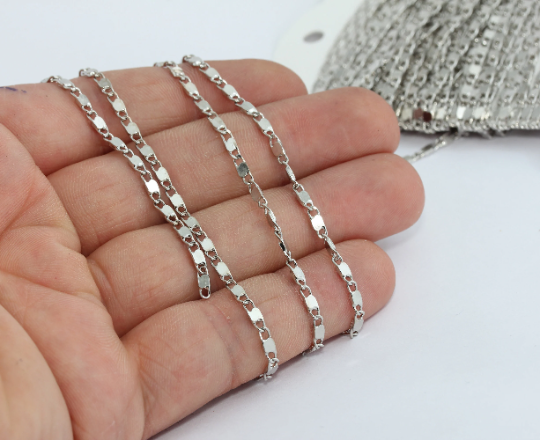 2,4 mm Rodyum Kaplamalı Bordür Zinciri, Gümüş Çubuk Zincir, Gümüş BXB231