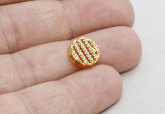 11 mm 24 Ayar Parlak Altın Boncuklar, Mikro Döşeme Boncukları, CZ Kayar ZRCN203