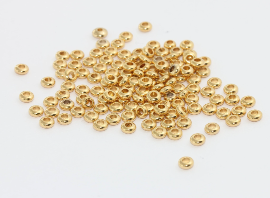 2x4,5 mm 24 ayar Parlak Altın Ara Boncuklar, Yuvarlak Boncuklar, Bilezik, MTE1235