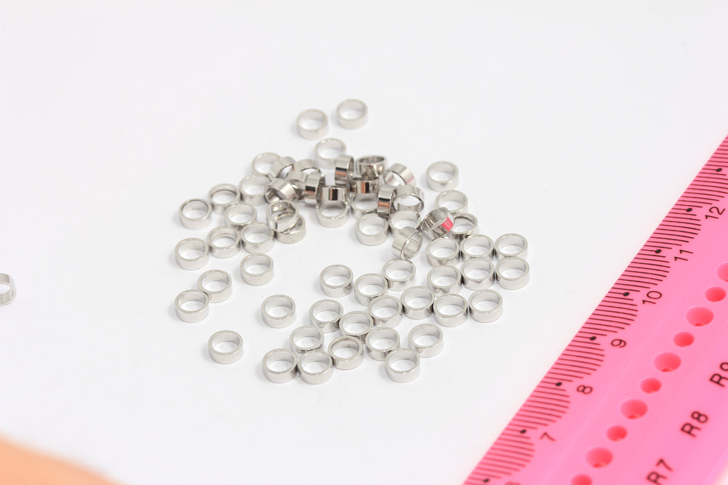 2x5 mm Rodyum Kaplamalı Kapalı Halkalar, Mini Tüp Ara Boncuklar, MLS787
