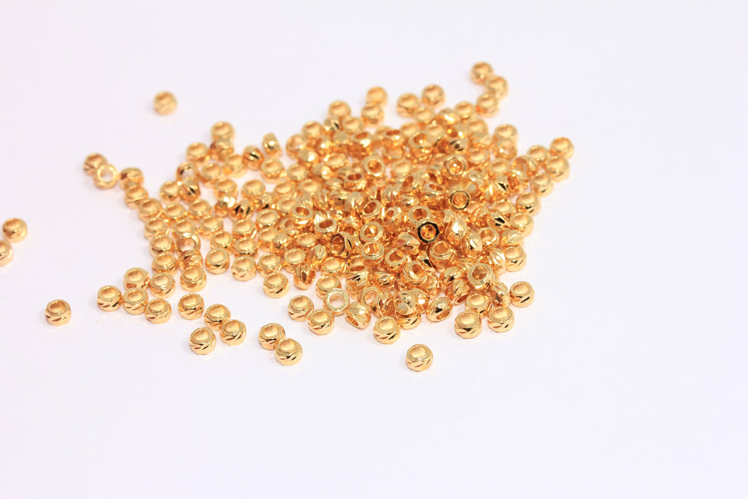 3 mm 24 Ayar Parlak Altın Lazer Kesim Boncuklar, Yüzlü Tılsımlar, Yuvarlak Bilezik Boncukları, Dokulu Ara Boncuklar, MTE509