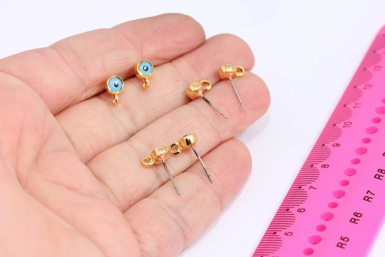 5x8 mm 24 Ayar Parlak Altın Küpeler, Nazar Boncuğu Küpeler, Küpe Çubukları, Nazar Boncuğu Takıları, Küpe Ayarları, Altın Kaplama Bulgular, EPE, MTE30