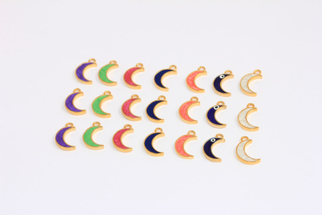 8x14mm 24 ayar Parlak Altın Ay Takıları, Mini Ay Boncukları, Mine Ay