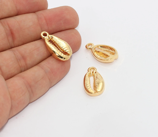 13x24mm 24 ayar Parlak Altın Kaplamalı Deniz Kabuğu, Deniz Kabuğu Kolye, MTE742