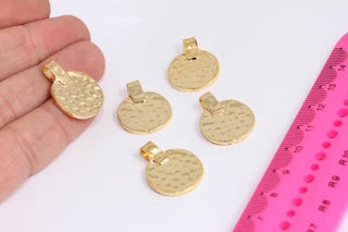 19x25mm 24 Ayar Parlak Altın Çekiçlenmiş Madeni Paralar, Madalyon, MTE285