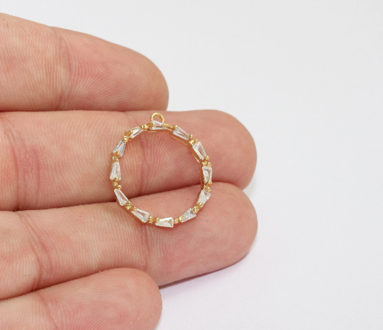 21 mm 24 Ayar Parlak Altın Kaplama Dairesel Takılar, Kübik Zirkonya Takılar, MLS48