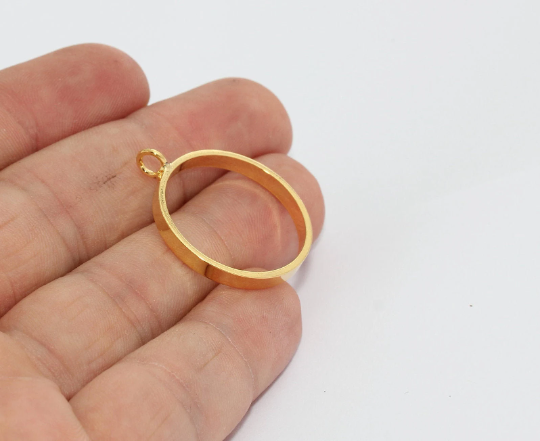 25x30mm 24 Ayar Parlak Altın Çerçeve Kolye, Açık Arka MTE1422