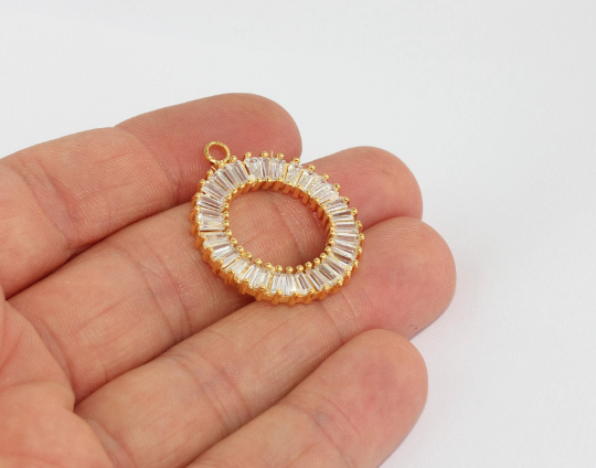 27x30mm - 24 Ayar Parlak Altın Kaplama Daire Charm, Baget MLS157