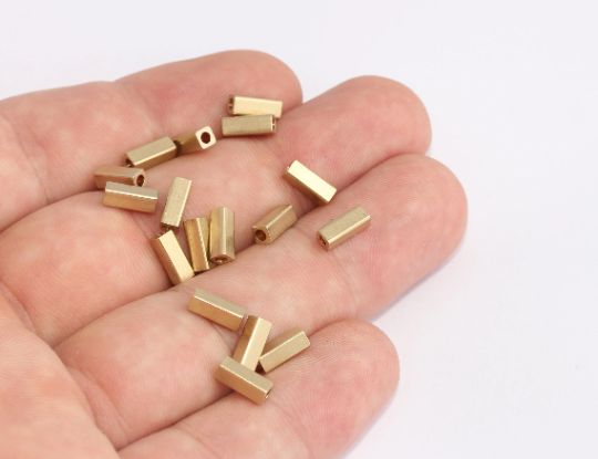 3x8mm Ham Pirinç Boru Boncukları, Kare Boru Boncukları, Ara Parça, KA81