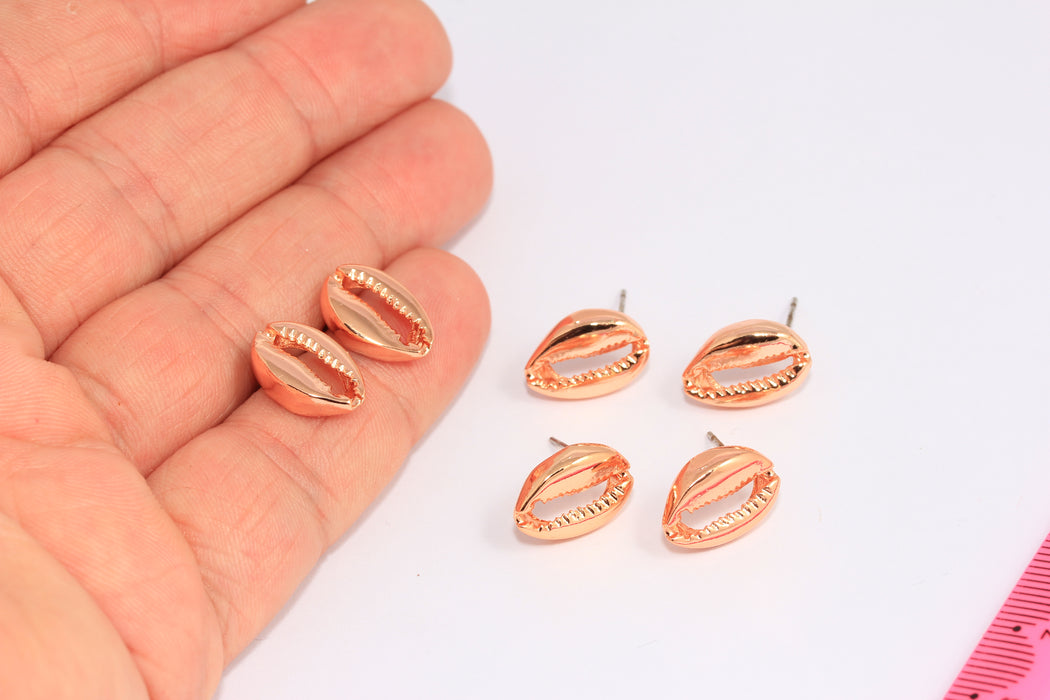 10x15 mm Gül Altın Küpe, Deniz Kabuğu Küpe, MTE1095