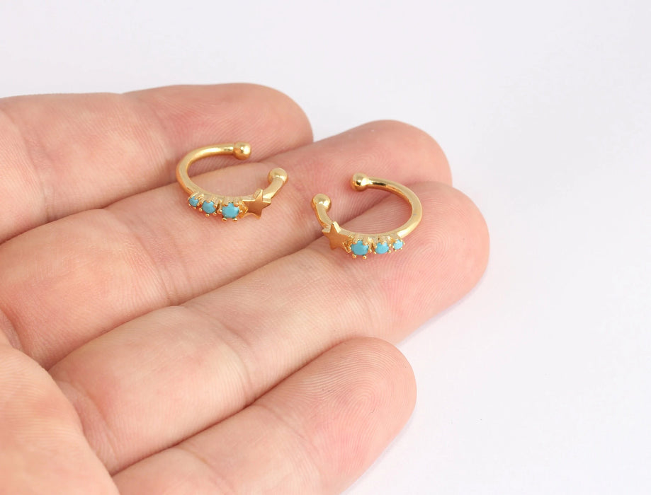 17 mm 24 ayar Parlak Altın Mikro Taşlı Yıldız Küpeler, Delikli, MTE1215