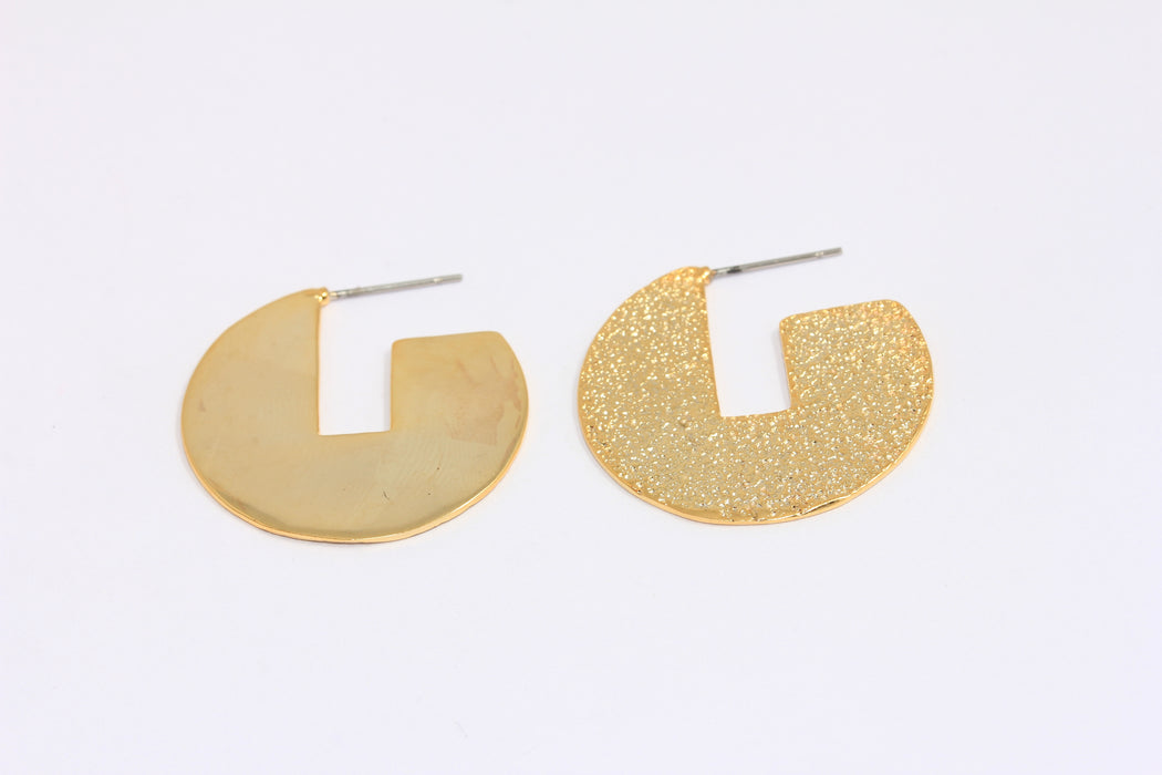31 mm 24 Ayar Parlak Altın Disk Küpeler, Ay Küpeleri, Hilal Küpeler, Pacman Çivi Küpeler, MLS1122