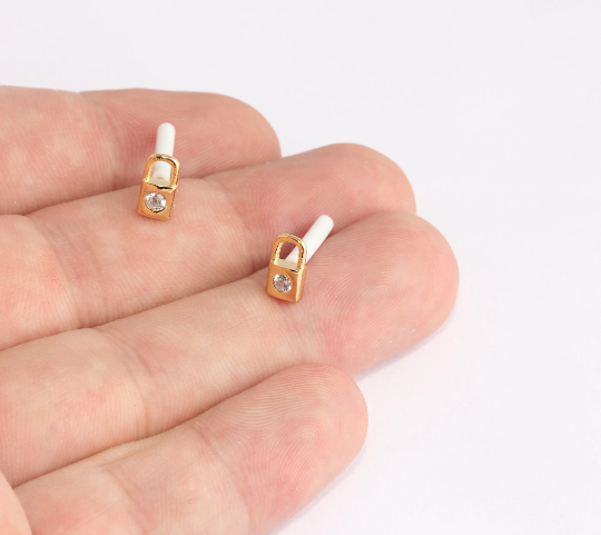 5x9mm 24 Ayar Parlak Altın Kilit Küpeler, Mikro Döşeme Mini Kilit SLM490