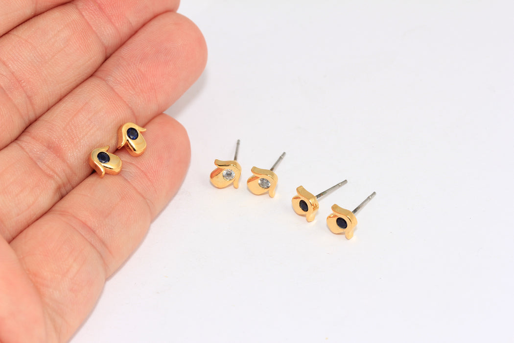 7x9mm Parlak Altın Hamsa Küpeler, Mikro Döşeme Hamsa Küpeler, CZ İsteğe Bağlı Taş Rengi Küpeler