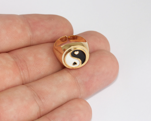 16-17 mm 24 Ayar Parlak Altın Yüzükler, Mine Yin Yang Yüzükler, MLS1097