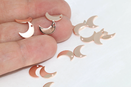 7x10mm Gül Altın Ay Takıları, Yarım Ay Kolye, ROSE174