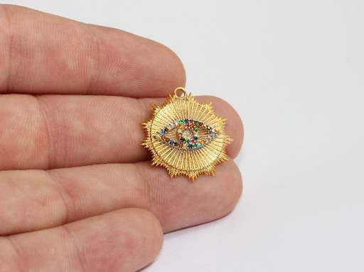 25 mm 24 ayar Parlak Altın Göz Zirkonyum Kolye, Güneş Kolye, MLS366