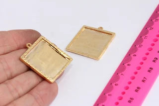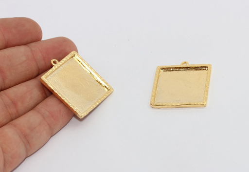 Malzeme : Pirinç İç : 26x26mm Büyük Çap: 29x32mm Renk : 24 ayar Parlak Altın Kaplama Miktar : İsteğe bağlı