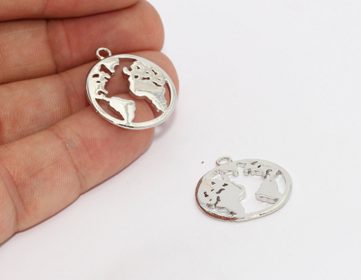 21 mm Gümüş Kaplama Dünya Haritası Kolye, Küre Kolye, BRT314
