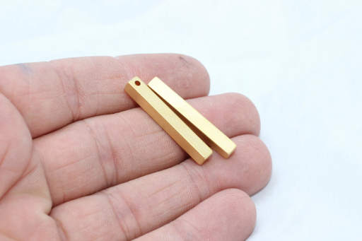 Malzeme : Pirinç Boyut : 4x4x30mm Delik : 2,4mm Renk : 24 ayar Mat Altın Kaplama