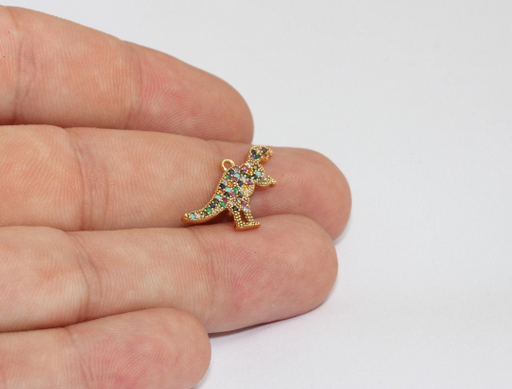 16x20mm 24 ayar Parlak Altın Dinozor Tılsımı, Mikro Döşeme MLS534