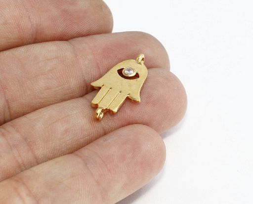 20x30mm 22 ayar Parlak Altın Fatima Eli, CZ Hamsa, Kübik ZRCN211