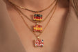 17'' 24 Ayar Parlak Altın Kalp Kolye, Kırmızı Mineli Kalp Kolye,