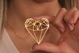 17'' 24 Ayar Parlak Altın Kalp Kolye, Kırmızı Mineli Kalp Kolye,