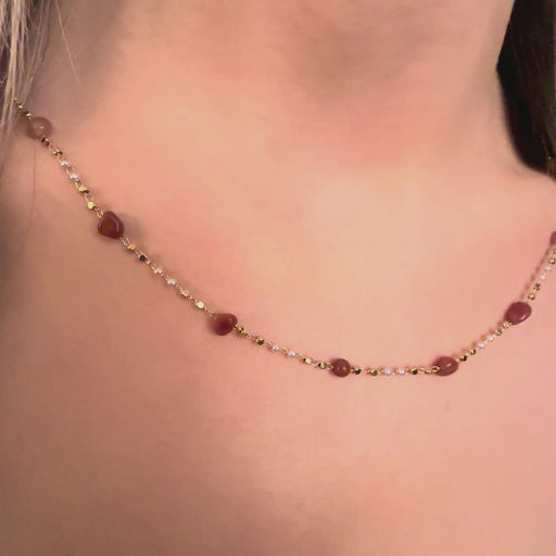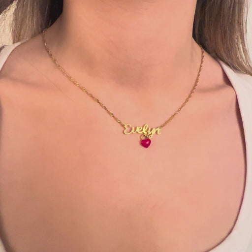 17'' 24 Ayar Parlak Altın Kalp Kolye, Kırmızı Mineli Kalp Kolye,