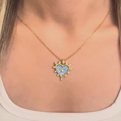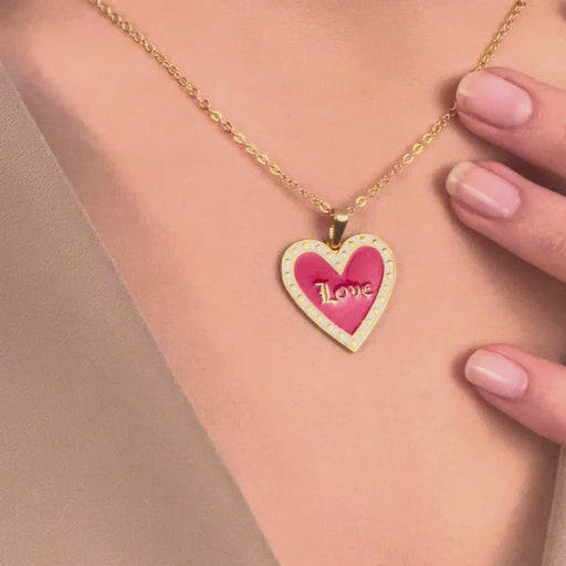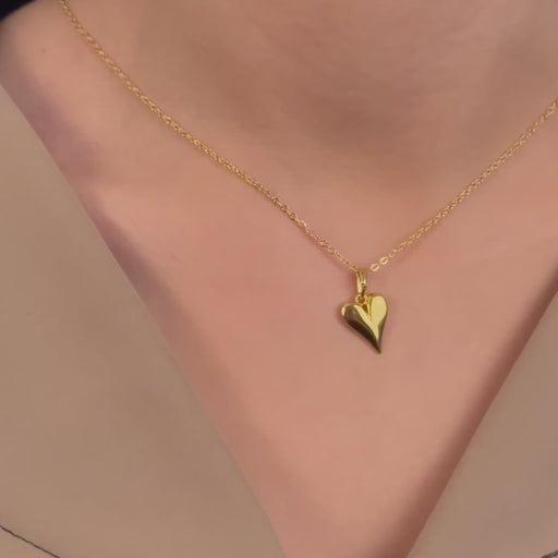 17'' 24 Ayar Parlak Altın Kalp Kolye, Kırmızı Mineli Kalp Kolye,