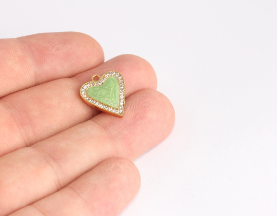 15x18mm 24 Ayar Parlak Altın Kalp Takılar, Mikro Döşeme Kalp, SLM706