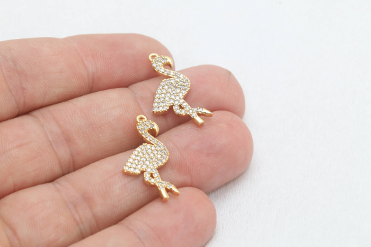 15x22mm 24 Ayar Parlak Altın Flamingo Takılar, Mikro Döşeme ZRCN571