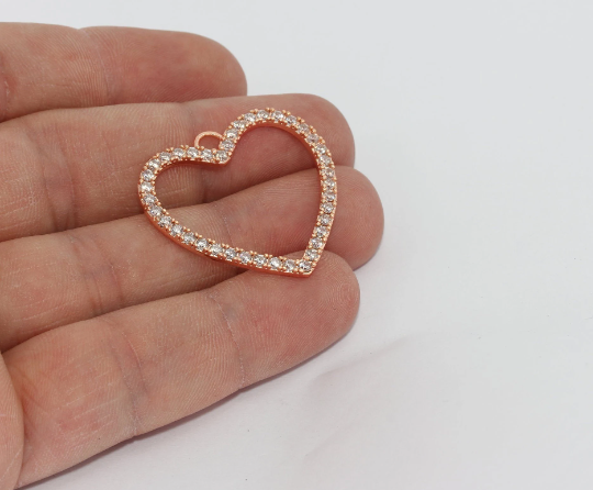 30x31mm Gül Altın Kalp, Mikro Döşeme, Kalp Takılar, Gül MTE1288