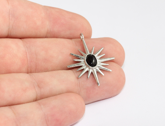 25x32 mm Rodyum Kaplama Yıldız Charm, Gümüş Kuzey Yıldızı, MLS482