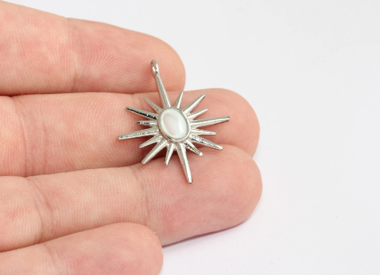 25x32 mm Rodyum Kaplama Yıldız Charm, Gümüş Kuzey Yıldızı, MLS476