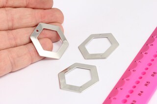 30 mm Gümüş Kaplama Altıgen Kolye, Geometrik Tılsım, MTE602