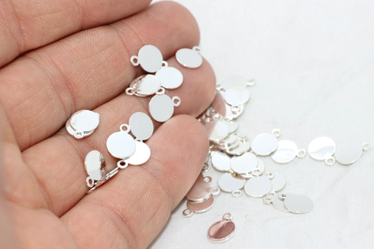 7 mm Rodyum Kaplamalı Madeni Para Takıları, Damgalama Diski, Yuvarlak, ALS35