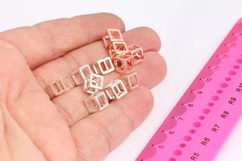 7 mm Gümüş Kaplama Küp Charms, Küp Kolye, Açık, MTE134