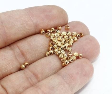 10 Adet 3mm 24 Ayar Parlak Altın Lazer Kesim Boncuk, Fasetli Boncuklar, Ara Boncuklar, Masif Pirinç Yuvarlak Boncuklar, Ara Boncuklar, Altın Kaplama Bulgular, MTE230