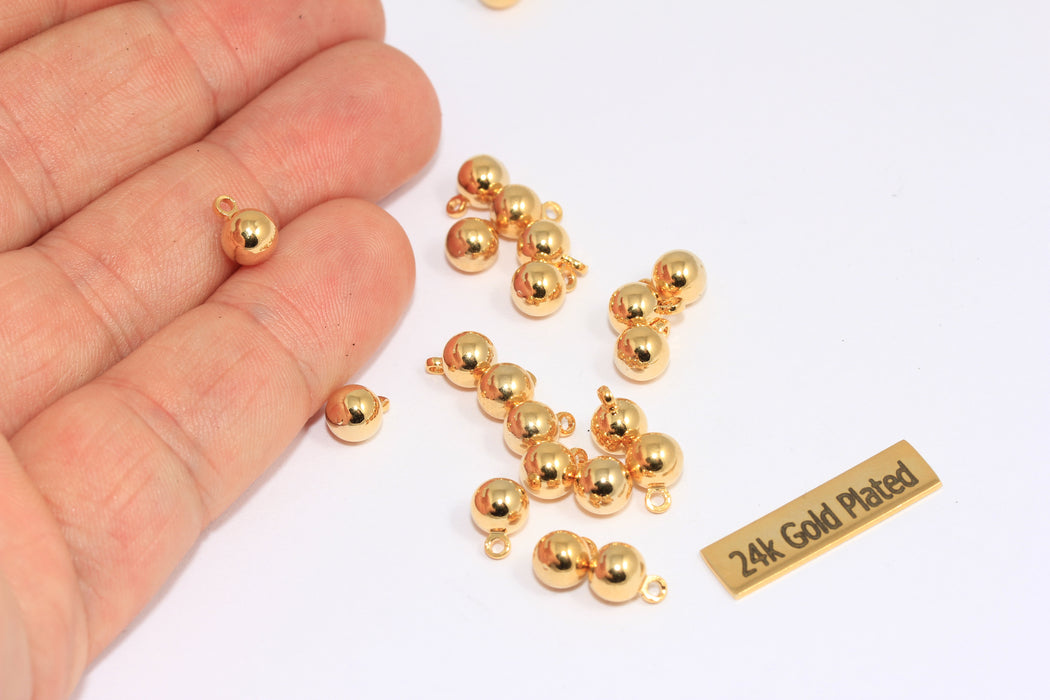 6 mm 24 Ayar Parlak Altın Top Boncuklar, Top Damla Bilezik Takıları, ROSE342-1