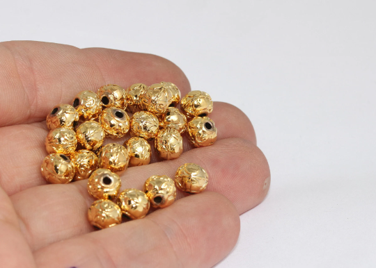 8 mm 24 Ayar Parlak Altın Boncuklar, Ara Boncuklar, İçi Boş Boncuklar, CHK402-1