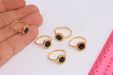17-18 mm 24 Ayar Parlak Altın Madeni Para Yüzükleri, Siyah Emaye Roma Rakamlı Yüzük, HRN32
